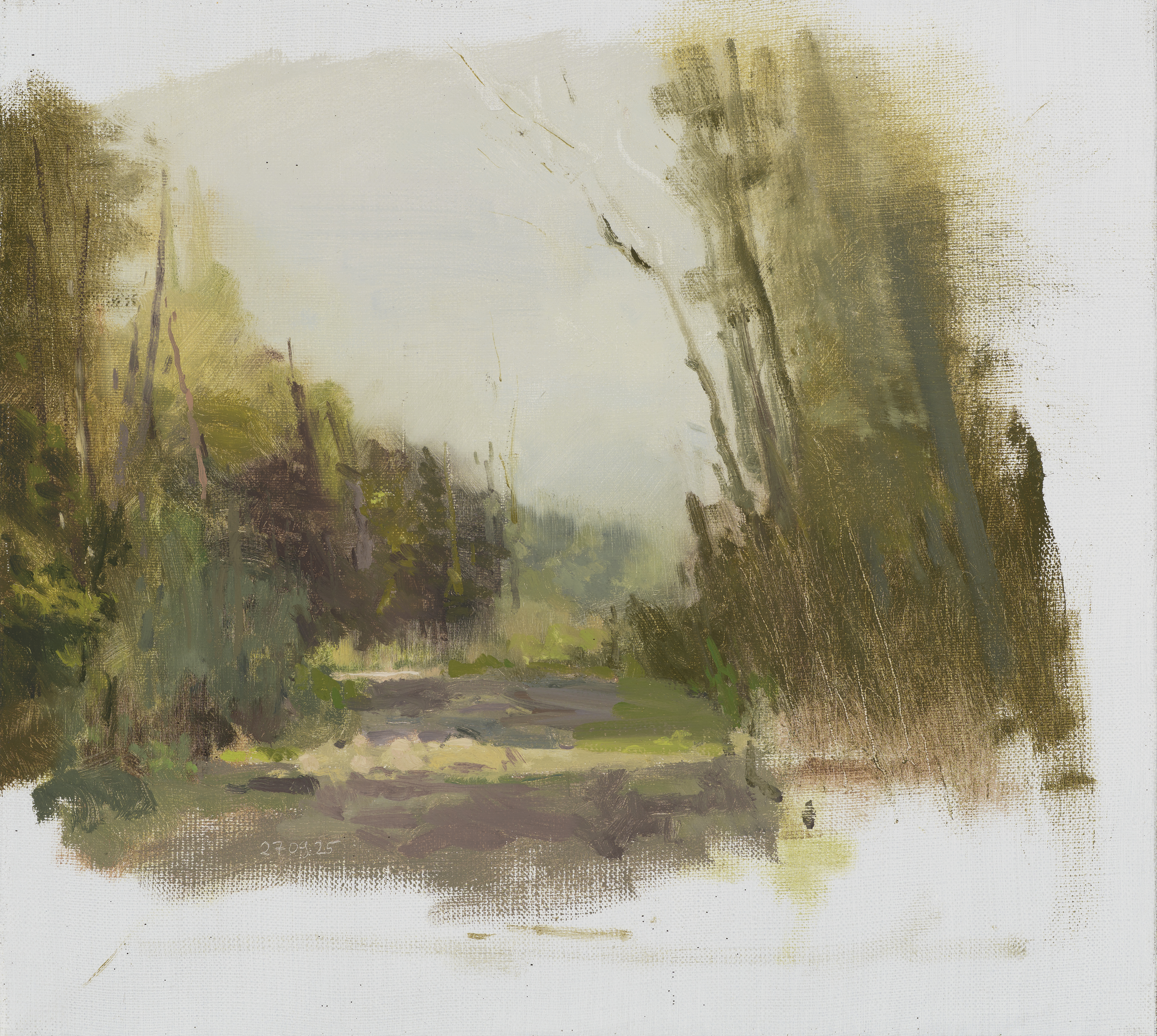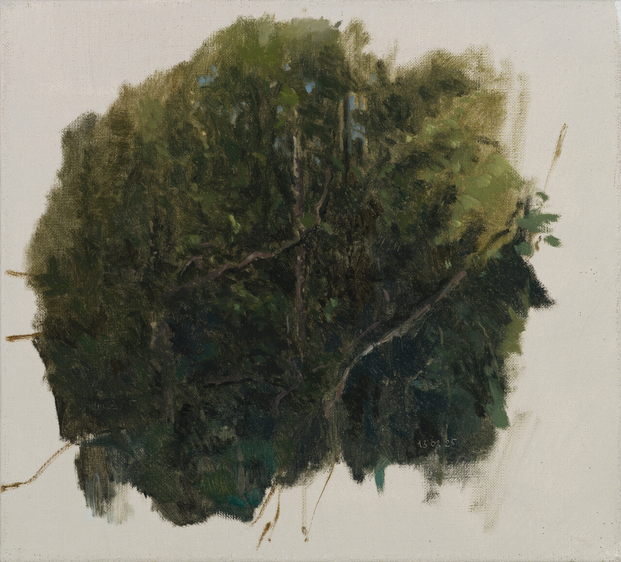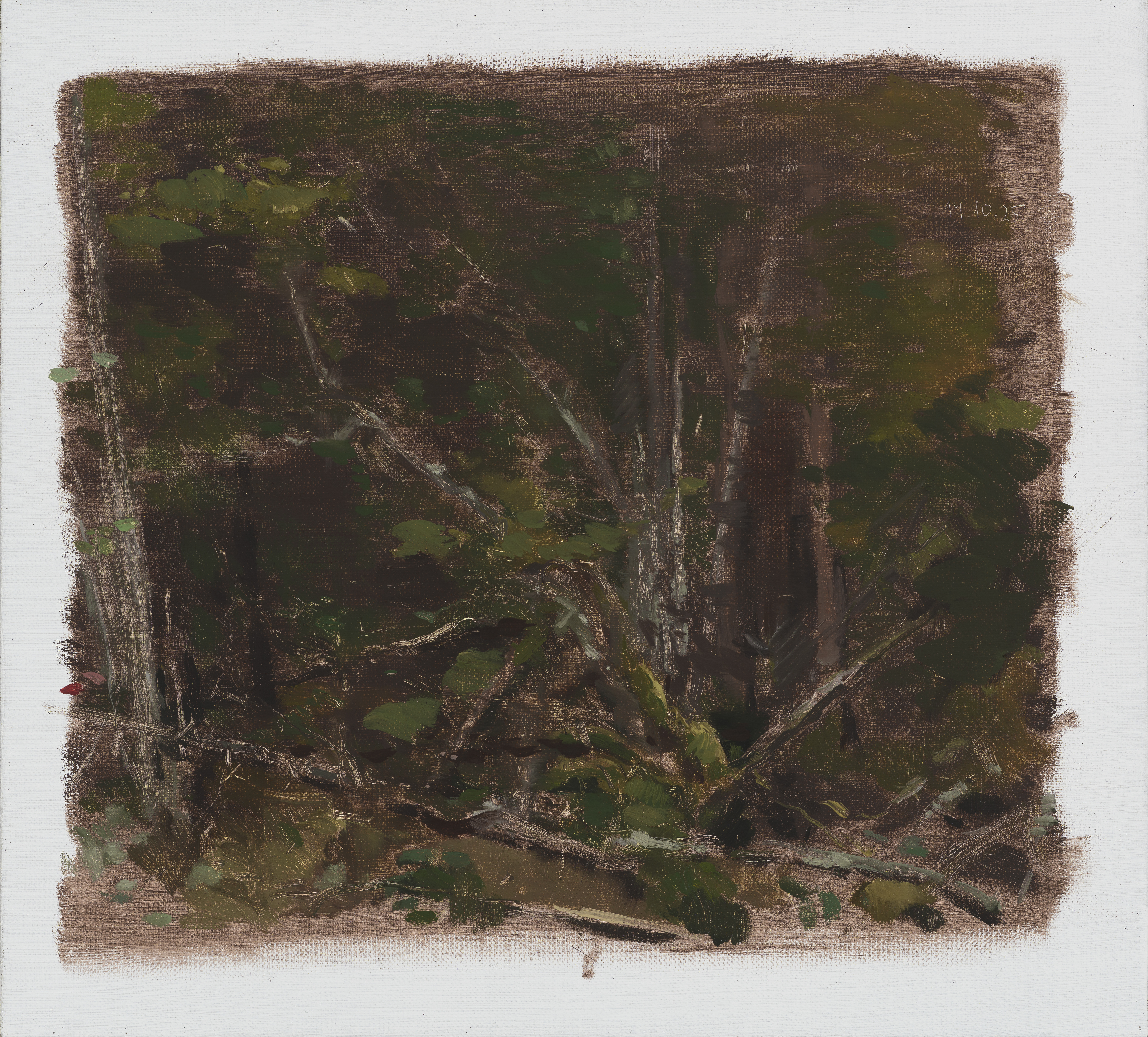 Kuigi siin on mõned maalid, mis täidavad kogu lõuendikaadri või püüdlevad harjumuspärase nelinurkse pildiformaadi poole, määrab kujutise ulatuvuse enamasti mitte kaader, vaid see, mille valib vaatest mingi sisemiselt tervikliku motiivina välja pilk. Me ju ei vaata kaaderhaaval, vaid okste, tüvede, maastiku kumeruste kulgemist pidi, valguse lahvanduste või säbrutuste kaupa, me vaatame mingit looduses leiduvat olevikuhetke, mis koondab pilgu oma dünaamikale. Ja olevikul on kestvus, aga kestvusel ei ole raami ega servi, ta asub keskendunud pilgus. Olevik ei saa tegelikult otsa, ta kestab, kuni teda ühel hetkel lihtsalt pole enam, on mingi uus olevik, aga tema olemusse ei kuulu lõppemine. Nõnda ka maal ei lõpe oma servades, ta lihtsalt on valmis saanud ühe valguse kestel.